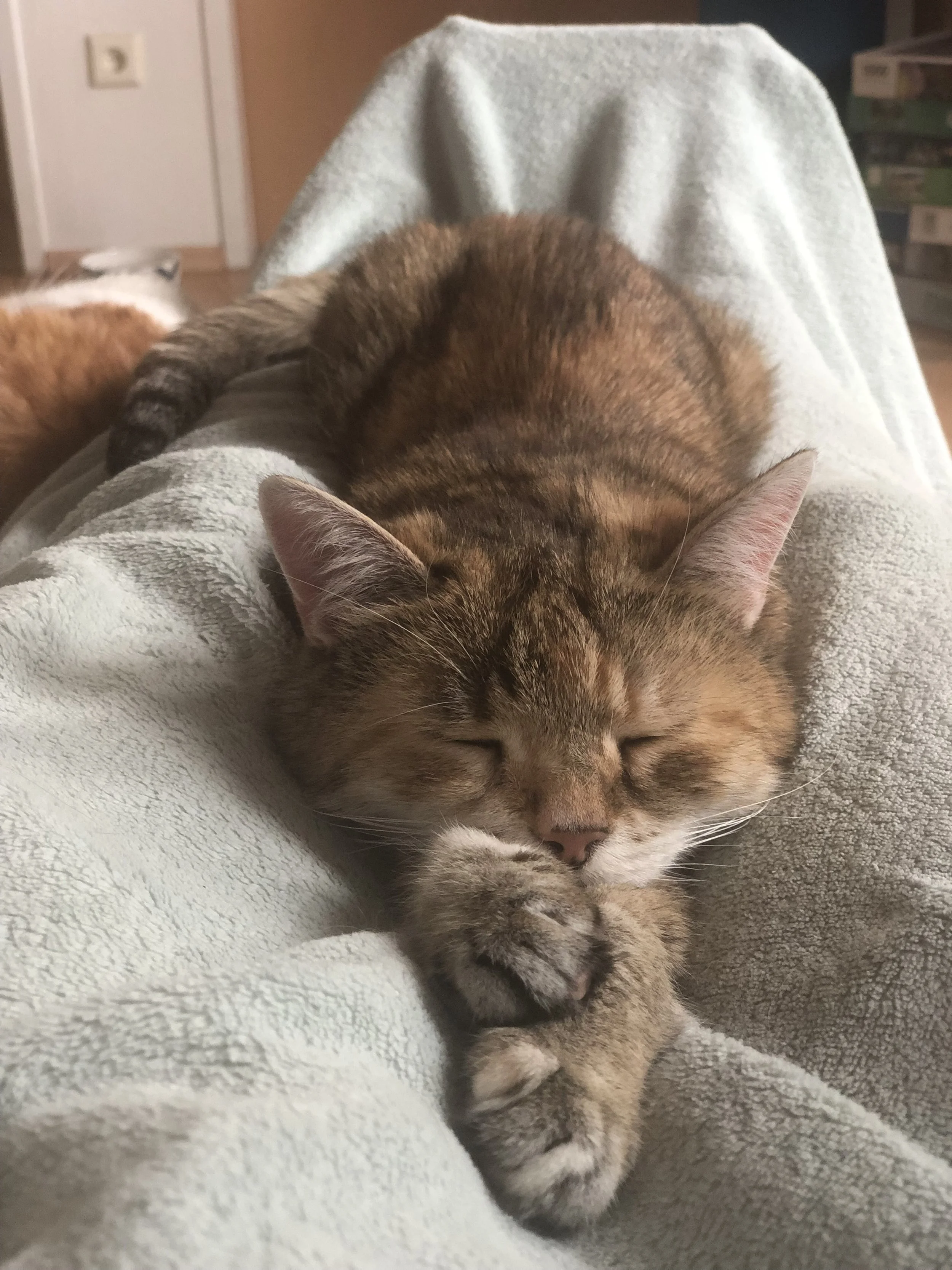 Franzi liebt es zu Kuscheln. Sie schläft jede Nacht im Bett, weckt morgens zuverlässig – mal sanft, mal mit kräftigen Pfötchenhieben – und ist einfach ein riesengroßer Schatz. 🐾